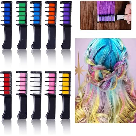 Amazon Com Hair Chalk Comb Set Nontoxic Temporary Diy Rainbow Highlighting Dye For Kids 10 Bright Vibrant Colorful Eco Safe No Mess Washable Wash Off Hair Chalking Colors Beauty (source:pinterest.com)
